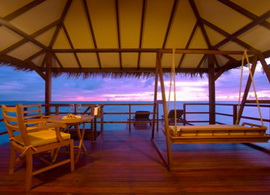 Water Villa – отдельно построенные виллы на сваях над кристально чистой лагуной, имеют двуспальные кровати с балдахином или две односпальные кровати, просторную ванную комнату с джакузи, гостиную, веранду, кушетку и шезлонги.